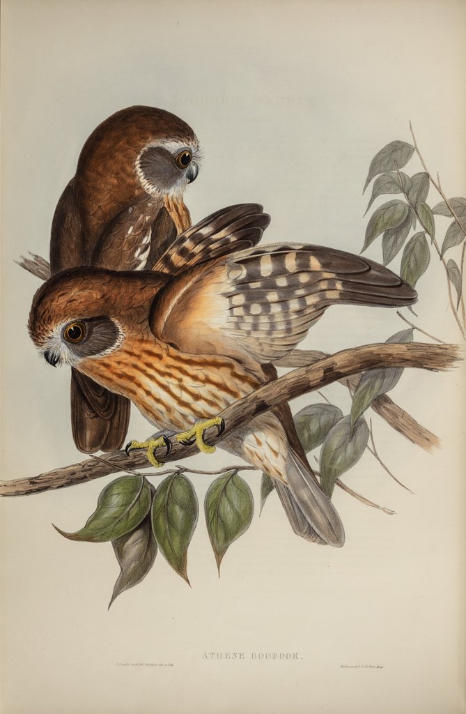 Inscribed ‘ATHENE BOOBOOK. J. Gould and H. C. Richter del et lith. Hullmandel & Walton Imp.’