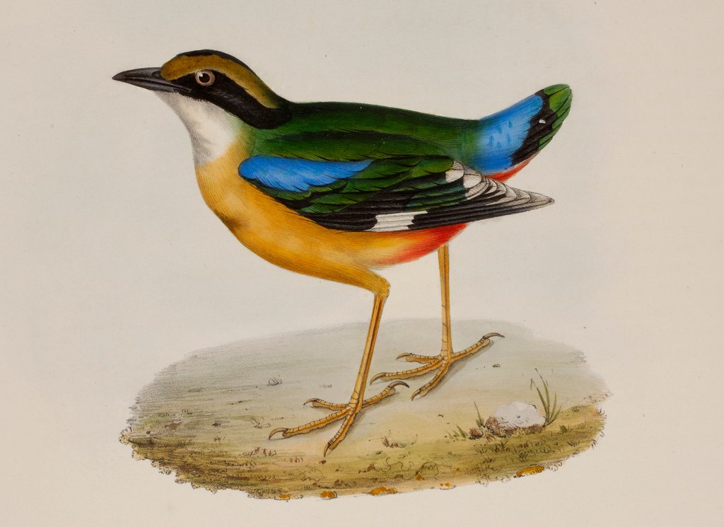 Inscribed ‘PITTA BRACHYURA. Drawn from Nature and on Stone by E. Gould. Printed by C. Hullmandel.’