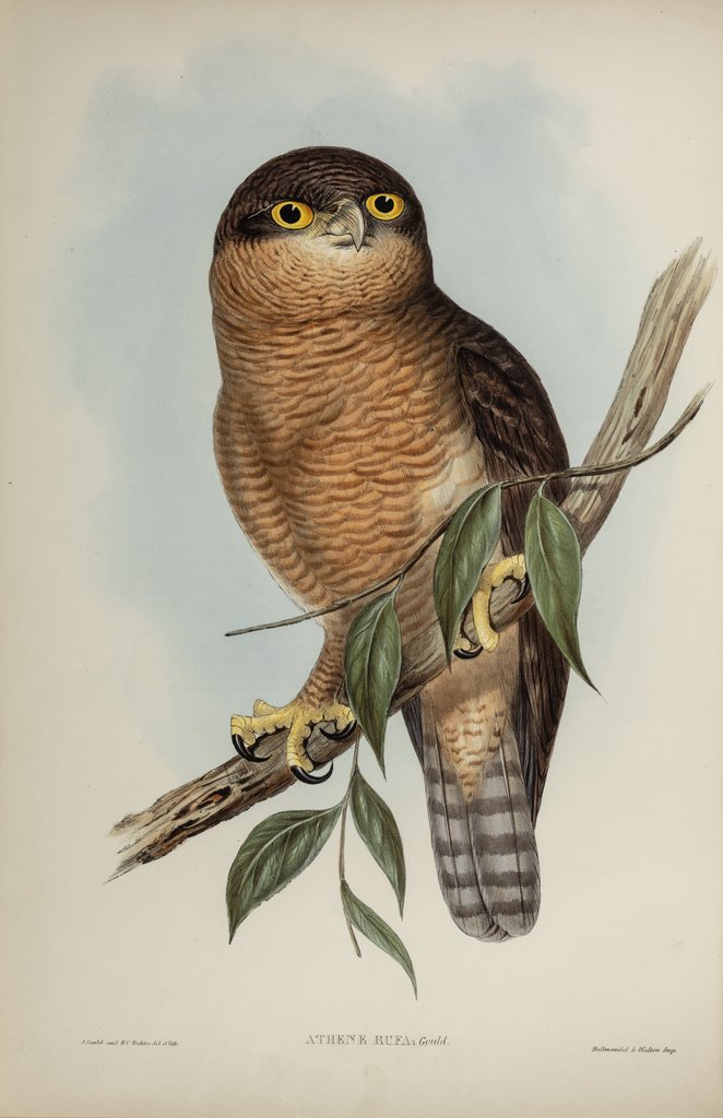 Inscribed ‘ATHENE RUFA: Gould. J. Gould and H. C. Richter del et lith. Hullmandel & Walton Imp.’